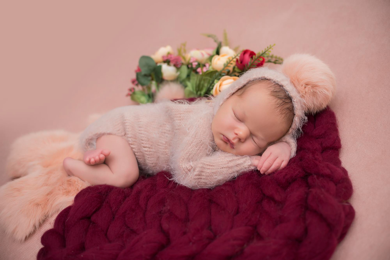Newborn sessions are ideal between 5 to 15 days, when babies are calm and naturally sleepy.